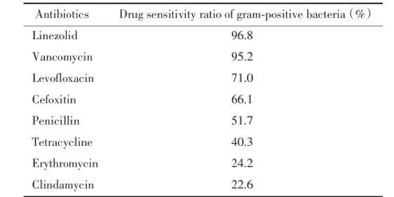 表2瘺管性肛周膿腫患者膿液革蘭陽性菌對抗菌藥物的敏感率
