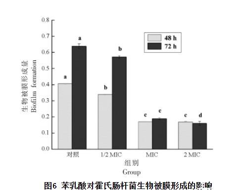 圖6 苯乳酸對霍氏腸桿菌生物被膜形成的影響