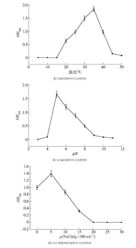 1.3.2不同環(huán)境因素對(duì)菌株SW5生長(zhǎng)影響的測(cè)定