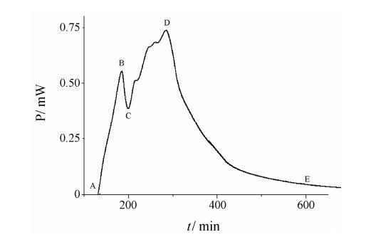 圖 1 在 37℃ 下,由微量量熱計(jì)監(jiān)測(cè)的在蛋白胨培養(yǎng)基中培養(yǎng)的志賀痢疾桿菌的 P-t 生長(zhǎng)曲線