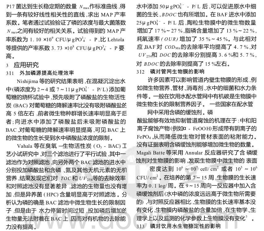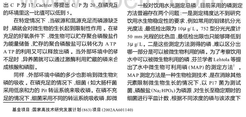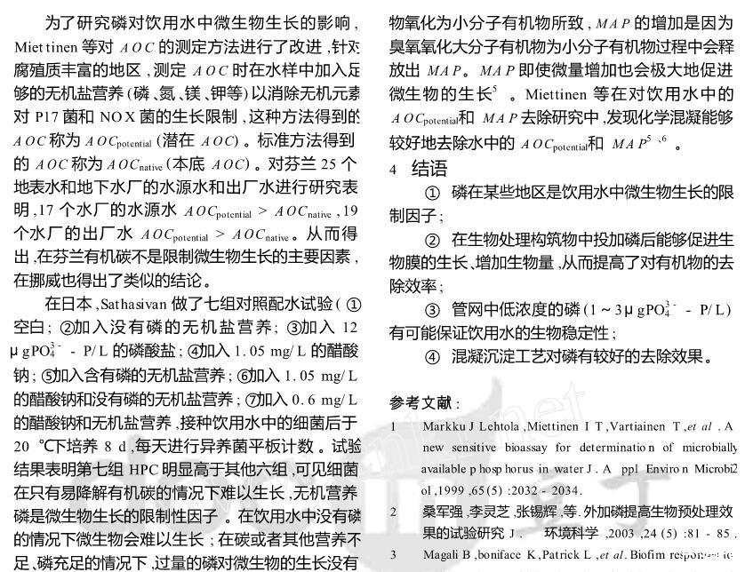 飲用水中磷對微生物生長的限制作用