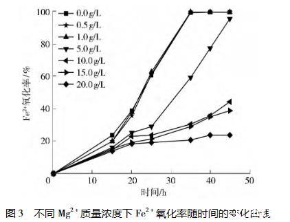 2.3 Mg2?質(zhì)量濃度對(duì)體系Fe2?氧化率的影響