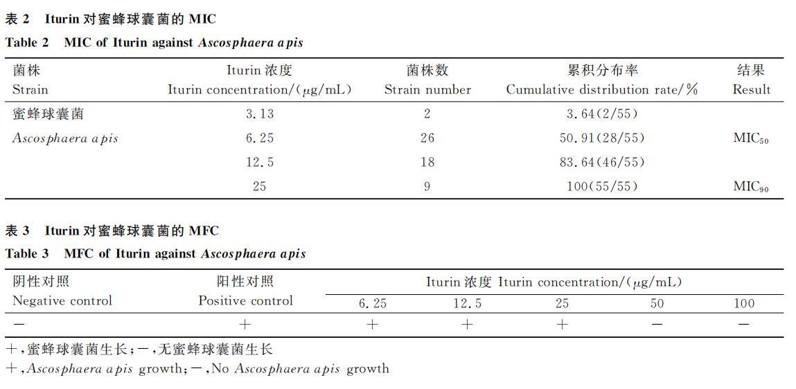 表2 Iturin對(duì)蜜蜂球囊菌的MIC